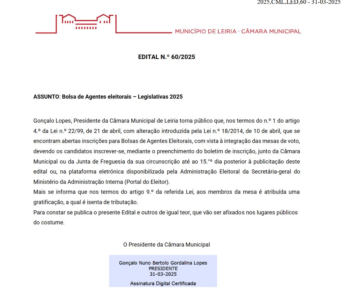 LEGISLATIVAS 2025 - 18 maio 2025 - INSCRIÇÕES ABERTAS até dia 15 de abril para recrutamento de agentes eleitorais / membros de mesa de voto - maiores de 18 anos.