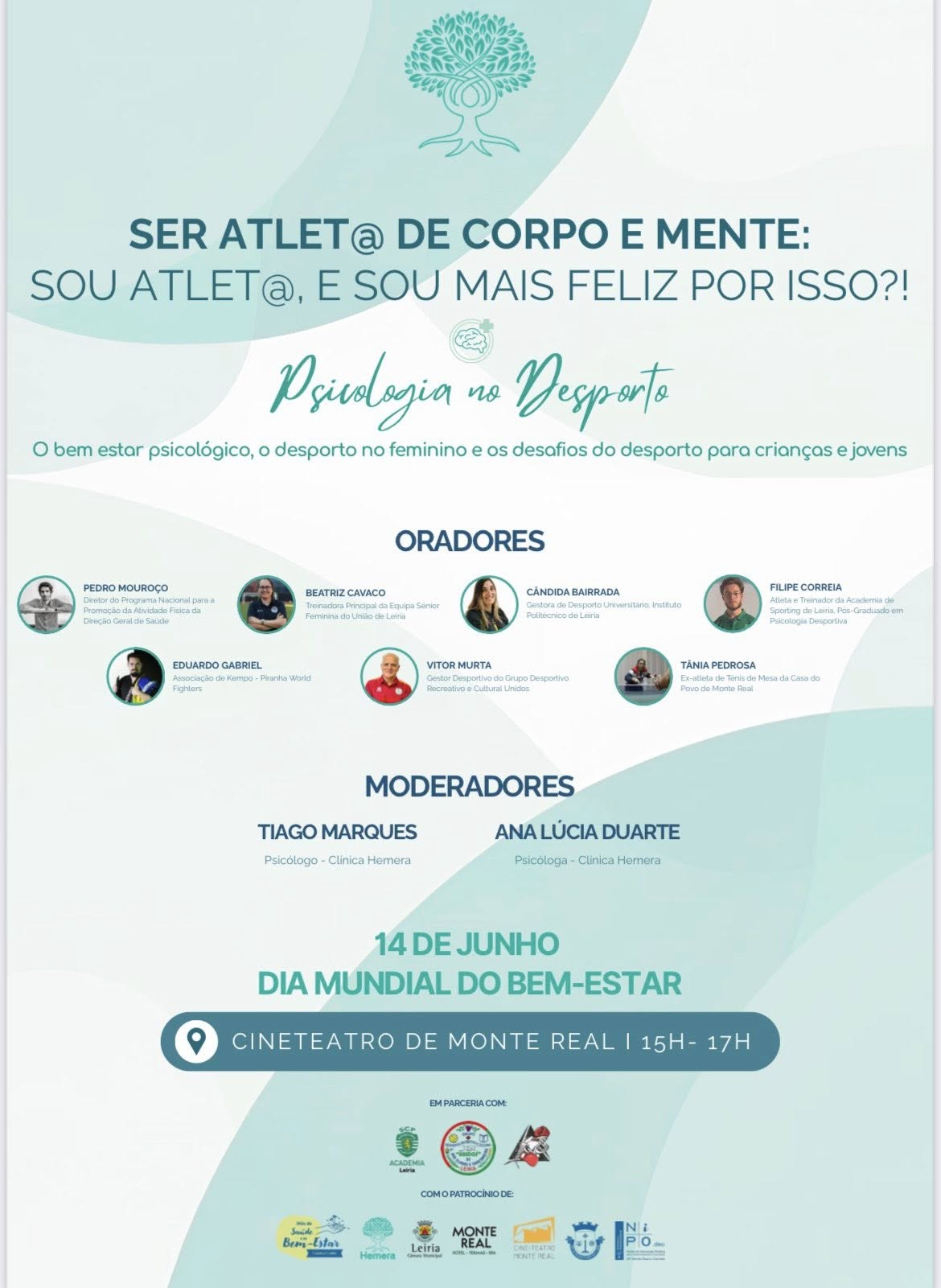 Se o tema da prática desportiva e da Psicologia lhe interessar, convidamos a assistir à mesa redonda com diversos convidados que, numa conversa informal, irão partilhar os seus conhecimentos, a sua experiência e ponto de vista sobre este importante tema.