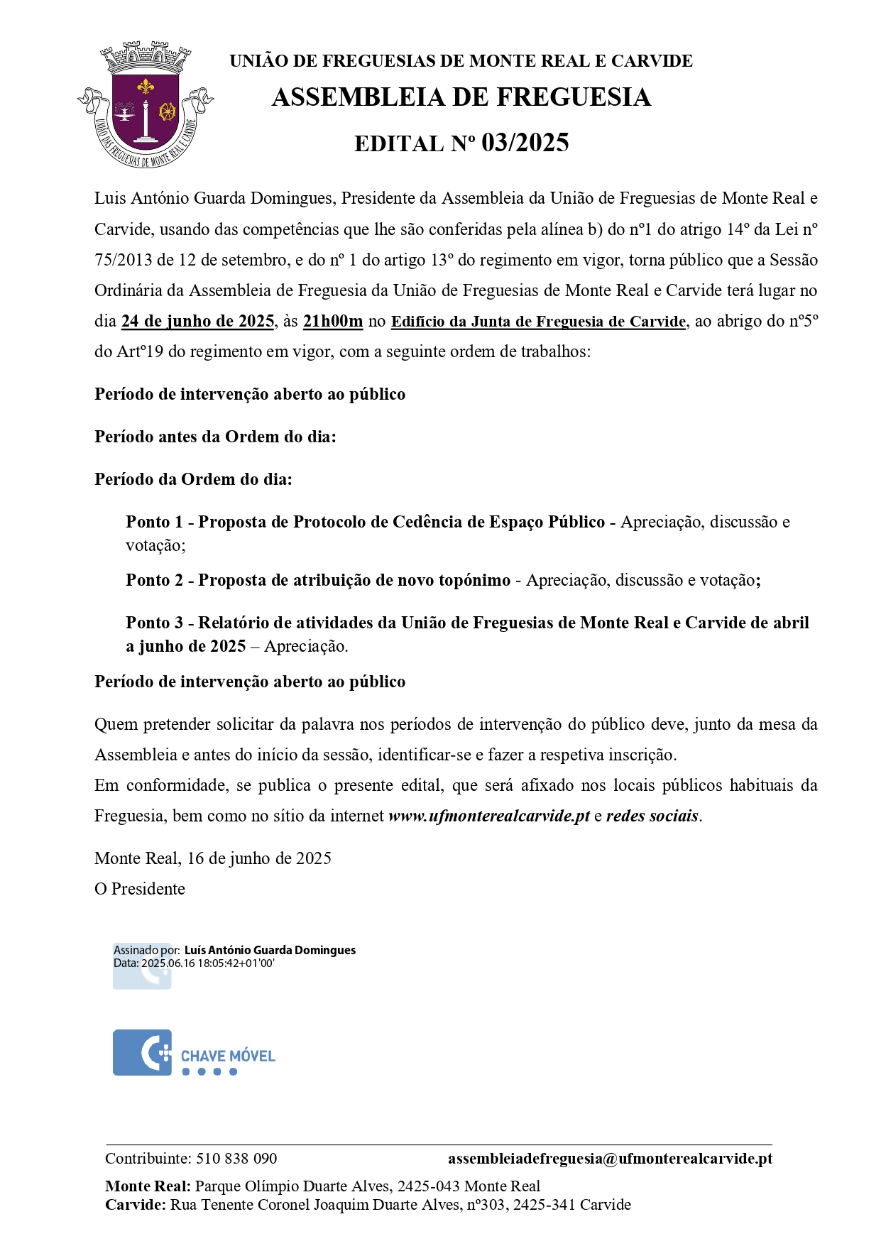 Edital n.º 3/2025 - Sessão Ordinária da Assembleia...