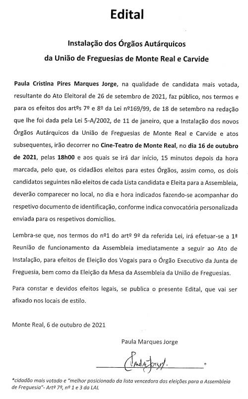 Instalação dos Orgãos Autárquicos para o Quadriénio 2021/2025