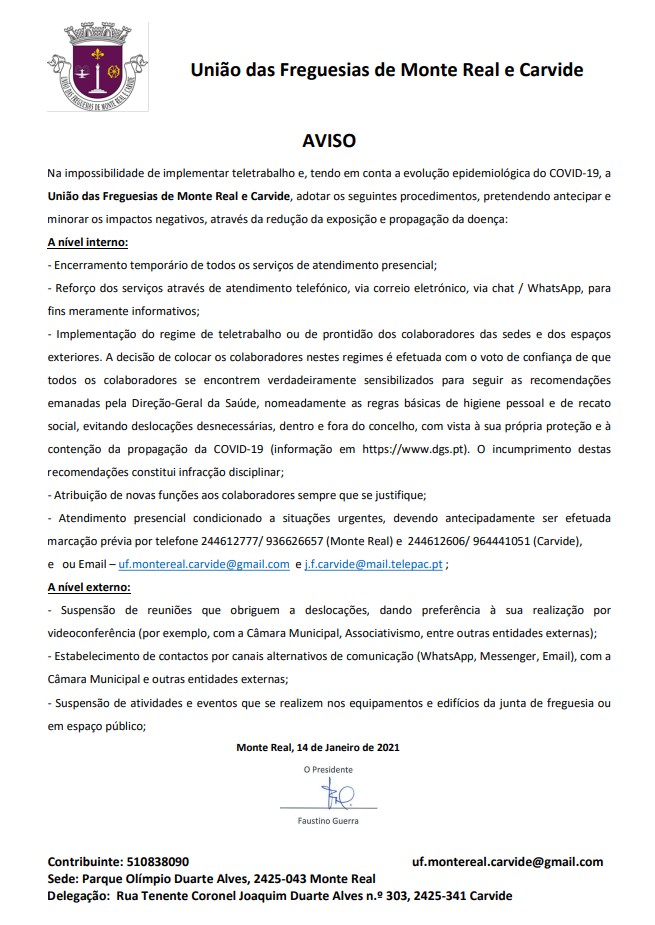 Aviso - Adoção de medidas devido á COVID...