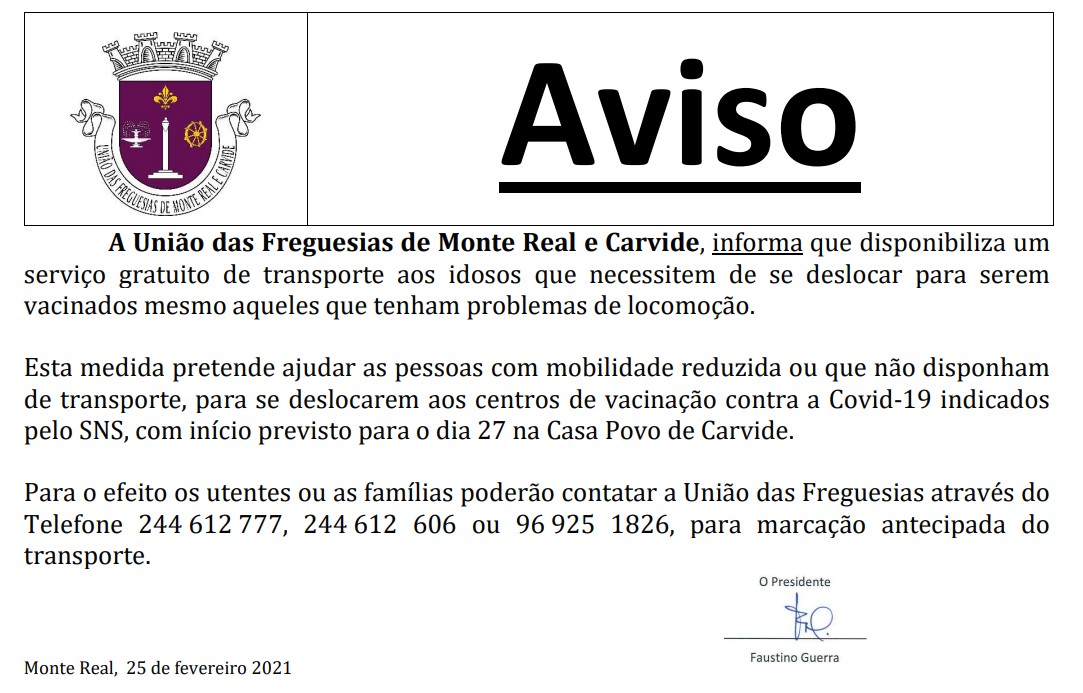 Aviso - Transporte para Vacinação