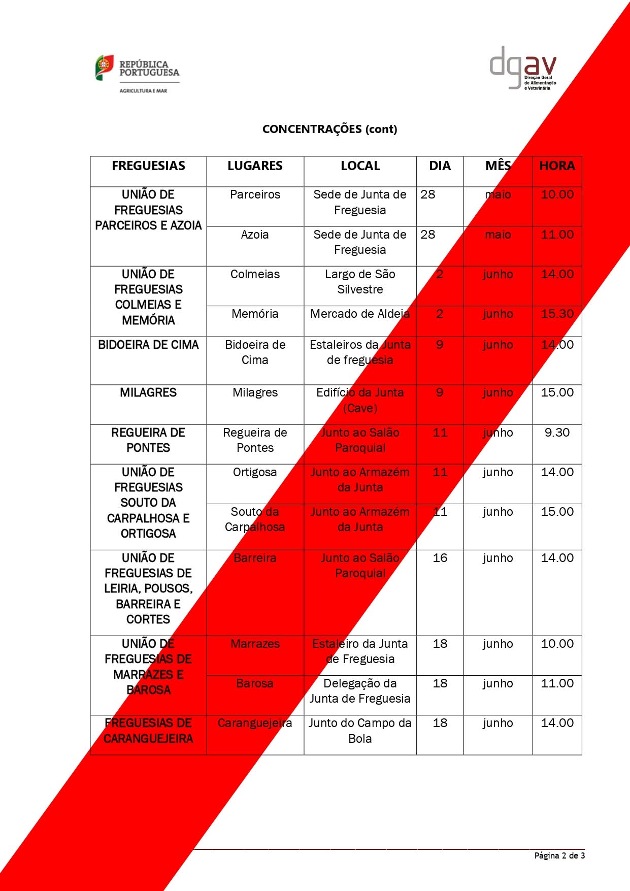 Abaixo poderá ver a calendarização completa para o município e mais informações.